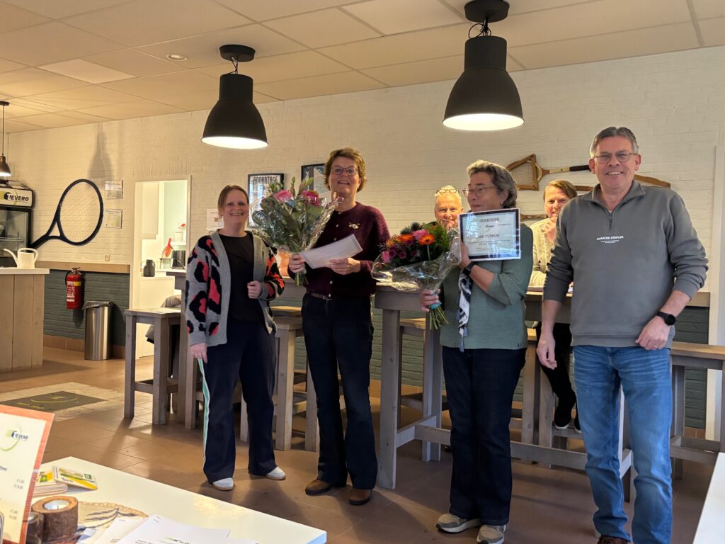 Hartelijk gefeliciteerd Marieke, Inge en Marcel en hopelijk mogen jullie nog vele jaren genieten van deze mooie tennissport!